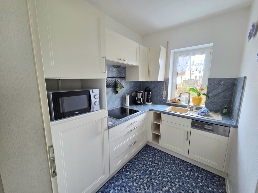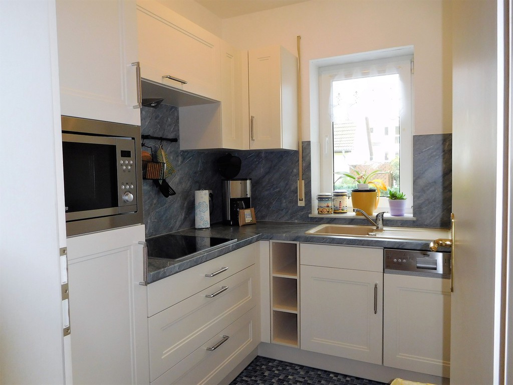 In der komplett ausgestatteten Einbauküche mit allem Komfort, wie Geschirrspüler, Mikrowelle, Kühlschrank mit Gefrierfach, Kaffeemaschine, Wasserkocher und Toaster ist die Speisenzubereitung eine Freude.
