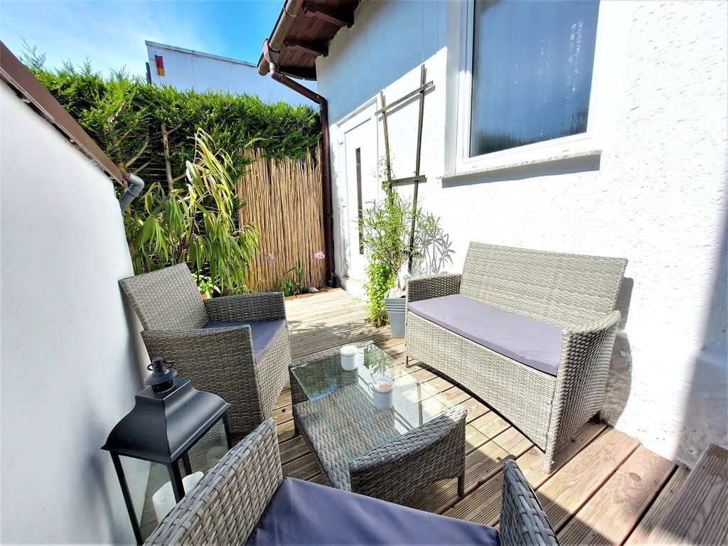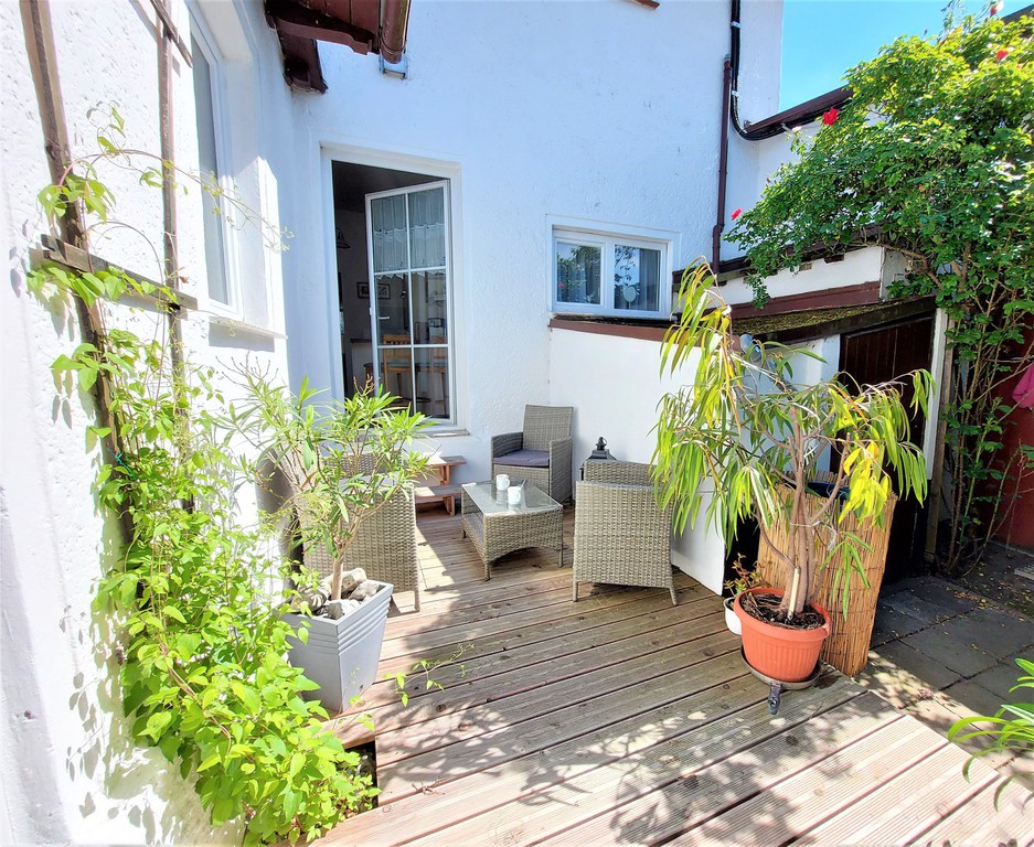 Privater kleine Gartenterasse an der Küche